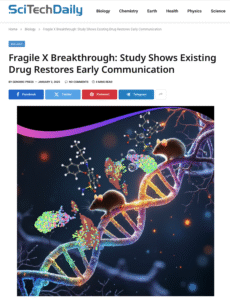 SciTechDaily featured a Genomic Psychiatry study showing that bumetanide, a drug regulating chloride levels in neurons, restored normal social communication in newborn mice with Fragile X syndrome when administered to pregnant mothers. Researchers from the University of Texas Health Science Center at San Antonio and Hirosaki University found an unexpected outcome: the same treatment reduced social interaction after puberty in both Fragile X and typical mice.